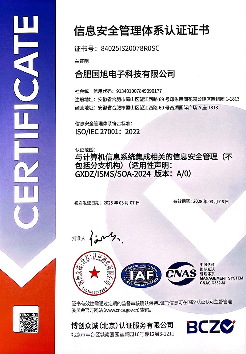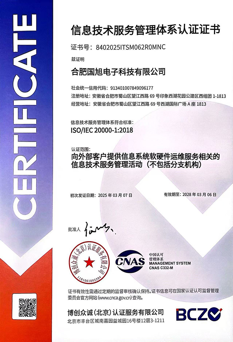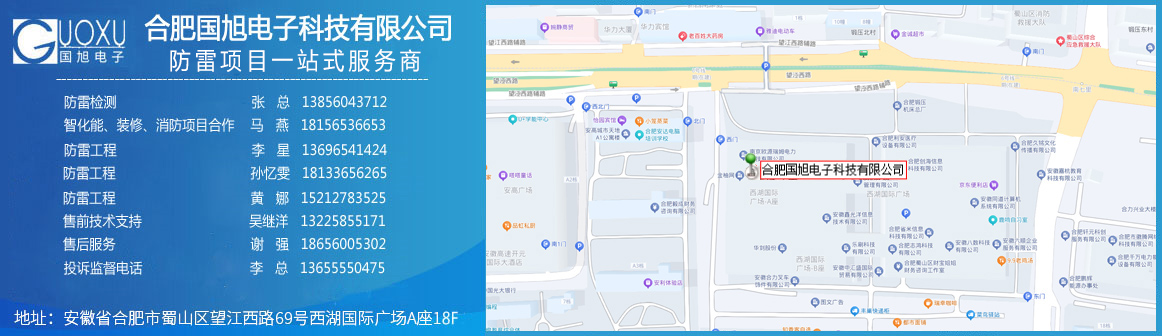 合肥國旭電子科技有限公司創(chuàng)立于2006年,總注冊(cè)資本2008萬。公司總部地址位于安徽IT主流商圈核心,合肥市蜀山區(qū)望江西路與肥西路交口西湖國際廣場。 公司是專業(yè)從事智能防雷檢測(cè)系統(tǒng)、智能化工程設(shè)計(jì)與施工工程、防雷設(shè)計(jì)施工工程、數(shù)據(jù)中心機(jī)房、消防工程、網(wǎng)絡(luò)監(jiān)控安全技術(shù)防范工程、及智能變電站安全預(yù)警系統(tǒng)。
